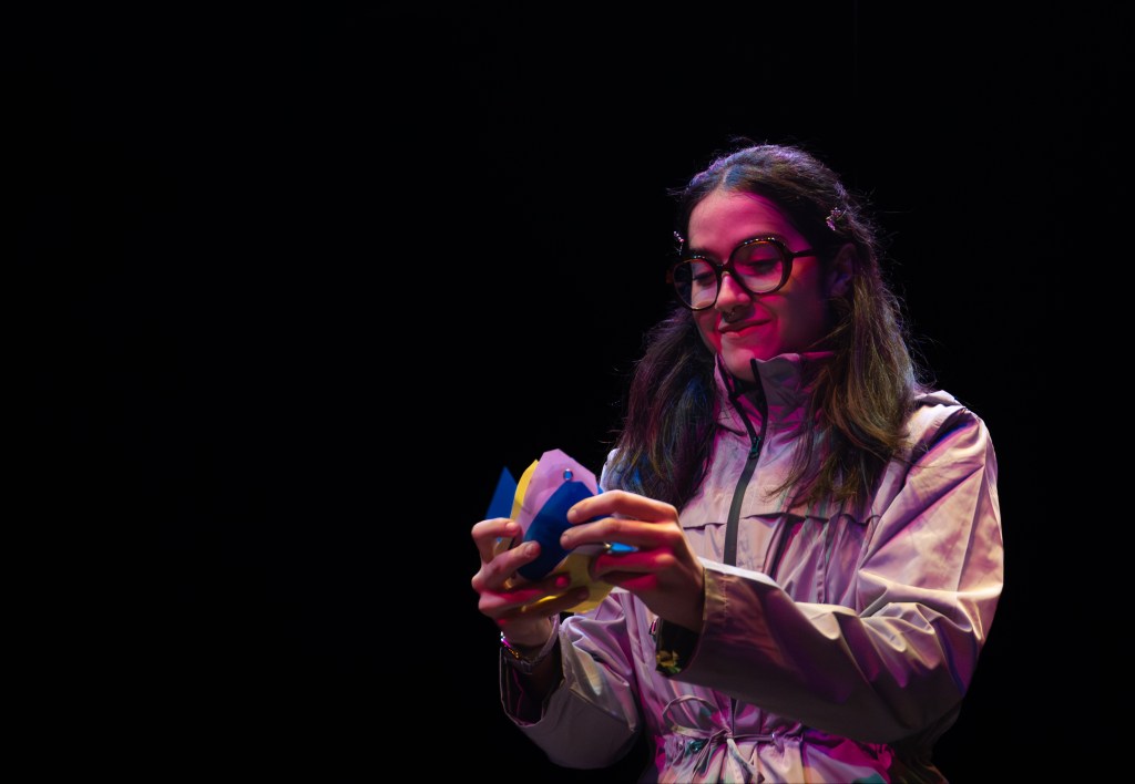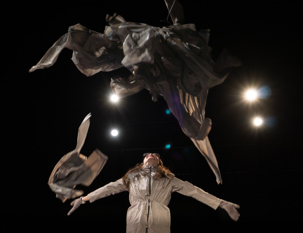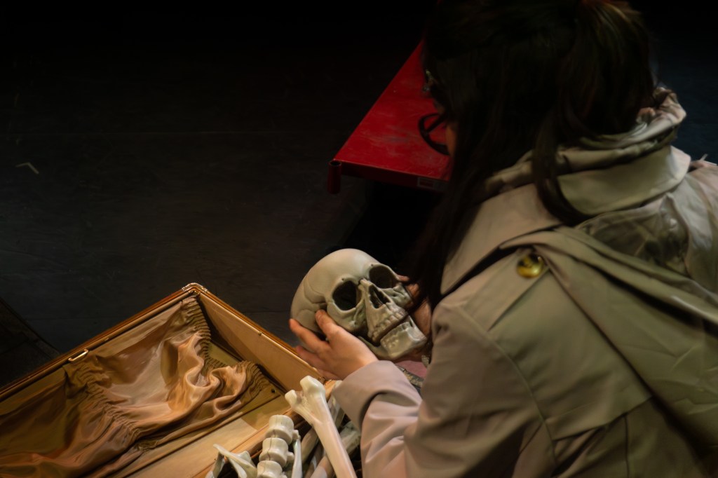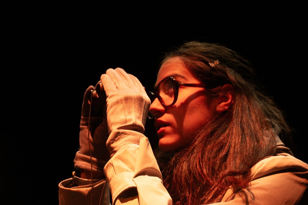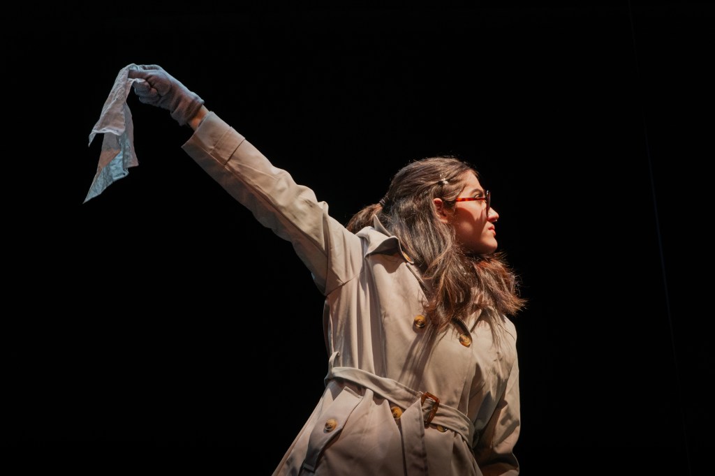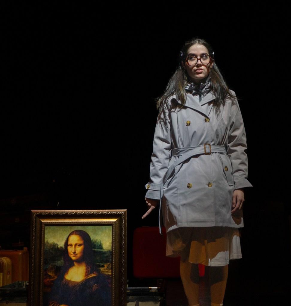 I directed a university production Personal Belongings at William & Mary’s Department of Theatre & Performance in Spring 2026. This rarely produced one-act monologue by Argentine feminist playwright Diana Raznóvich was written in 1975, anticipating the military coup that would install a dictatorship, which waged a “dirty war” on its citizens (1976-1983), supported by the US. The play is a satire on political detention and exile, taking audiences through a whirlwind of tragic, absurd events, as a “Diva” loses her sense of place and self. Seemingly on her own, she searches for her belongings among piles of suitcases in a baggage claim, where she remains trapped.