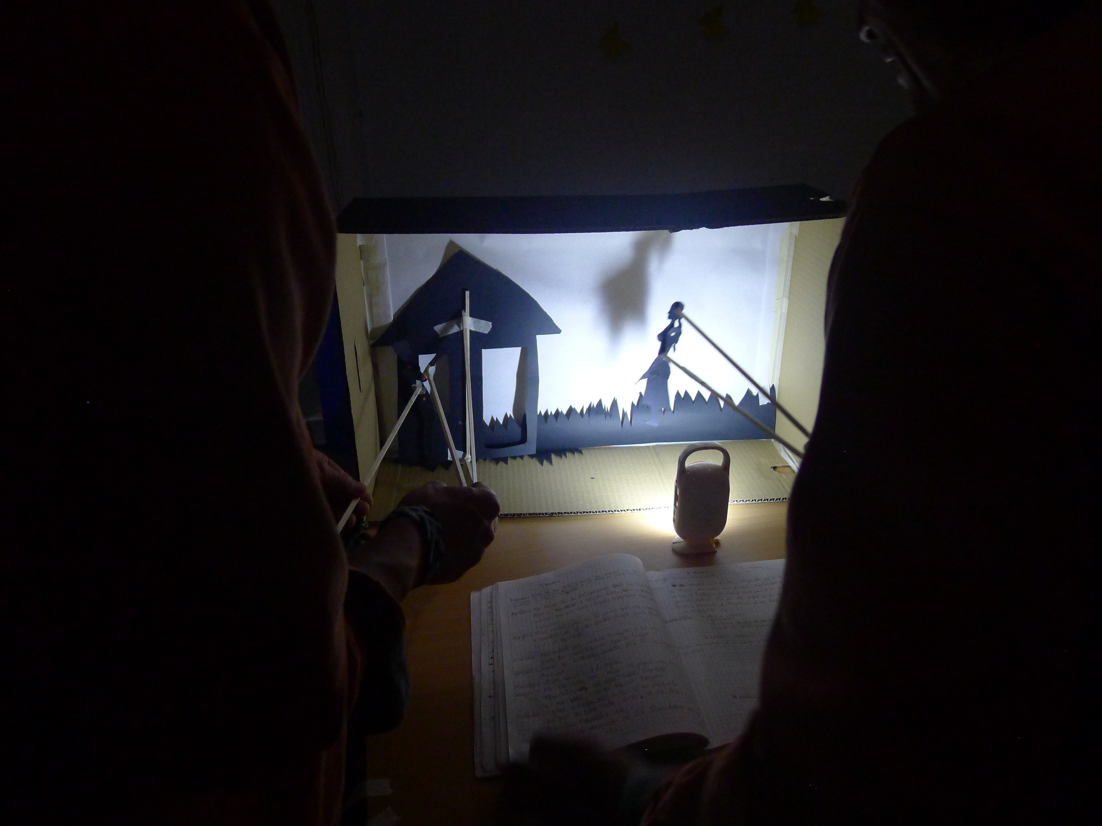 Obra de títeres de sombra sobra la leyenda del Jinete